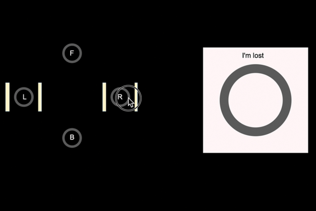 In the tunnel, there’s also a large “I’m lost” button, but every time users click on it, they are navigated to a different random point, and a COVID-19 public service announcement plays. “The more lost you say you are, the more lost you’ll be [in the game],” Fox says. “It’s a commentary on how you have to stop dwelling on when you’re going to get out and when the pandemic is going to end — because that’s not going to help anything; it’s just going to make it worse.”